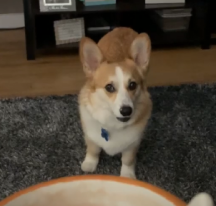 Корги опасается кружки хозяина