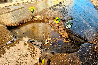Жители Самары возложили на дорожную яму, которая находится в границе двух районов города, искусственные цветы. Таким способом россияне хотели показать, что «похоронили» ее вместе с надеждой на ремонт полотна. Фотографии ямы опубликовали в сообществе «ДТП Самара» во «ВКонтакте».