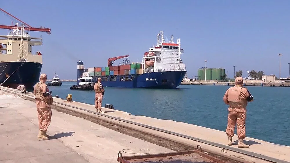 Единственная компания, которая совершает регулярные рейсы в Сирию, обладая контейнерами - "Оборонлогистика". Это логистическая компания нашего Министерства обороны, которая использует для транспортировки военные суда. На фото в начале данного материала представлено именно такое судно - Спарта III.