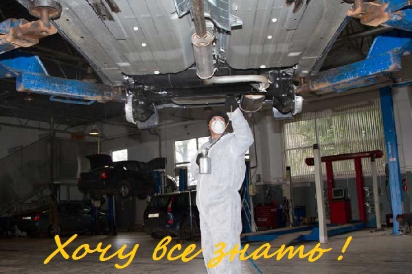 По окончании предварительной подготовки антикоррозийный препарат специальными распылителями наносится под давлением на днище и колесные арки. При полном антикоре - обрабатываются и другие участки.