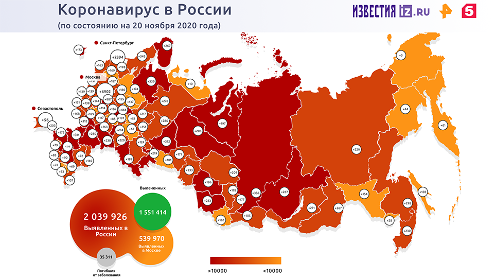 Ранее оперштаб по борьбе с коронавирусной инфекцией сообщал, что, по данным на 20 ноября, вирус был подтвержден у более чем 24 тысяч россиян. Лидерами по числу новых случаев стали Москва (6902), Санкт-Петербург (2394), Московская область (887), а также Нижегородская область (444) и Свердловская область (372)