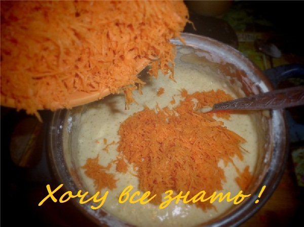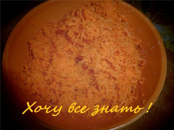 Вымытую и очищенную морковь натираем на мелкой терке. Для любителей морковки или кому некуда приспособить этот замечательный корнеплод - чем больше, тем лучше.