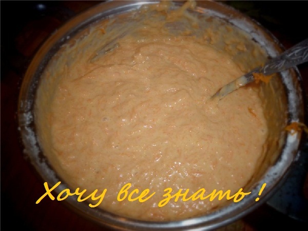Добавляем тёртую морковь в тесто. Также можно добавить грецкие орехи или любые сухофрукты.
