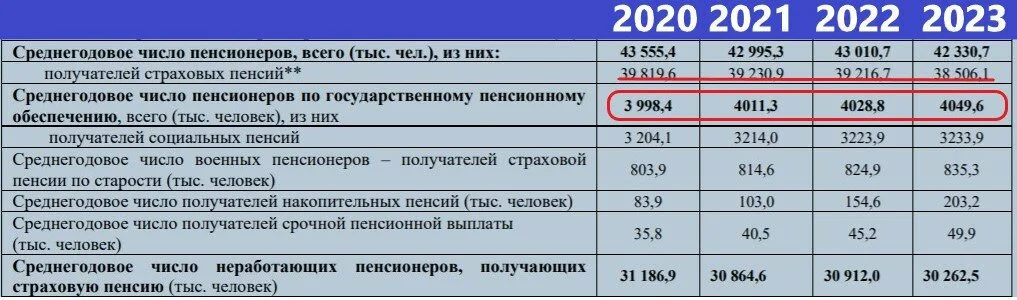 Число пенсионеров по гос. обеспечению вырастет с 3 998 тыс. до 4049 тыс.!