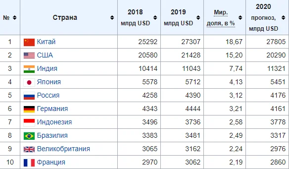 Таким образом, список стран по ВВП (ППС) по итогам года будет выглядеть следующим образом: