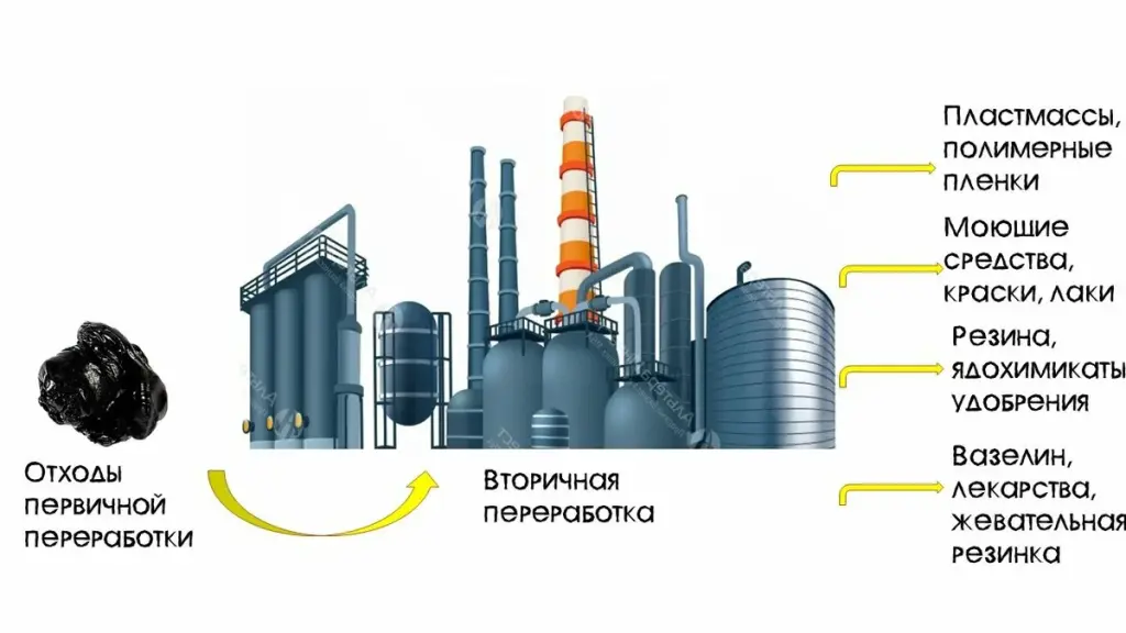 В принципе на производство именно этих продуктов США и делает упор. Но после первичной переработки еще остаются вполне пригодные отходы, которые отправляют на вторничную переработку. После чего получаются производные для пластмассы, моющих средств, резины и много еще чего, вплоть до жевательной резинки.