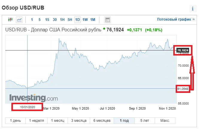 Получается, что с января месяца — за 10 месяцев единица американской валюты выросла на 15 рублей!