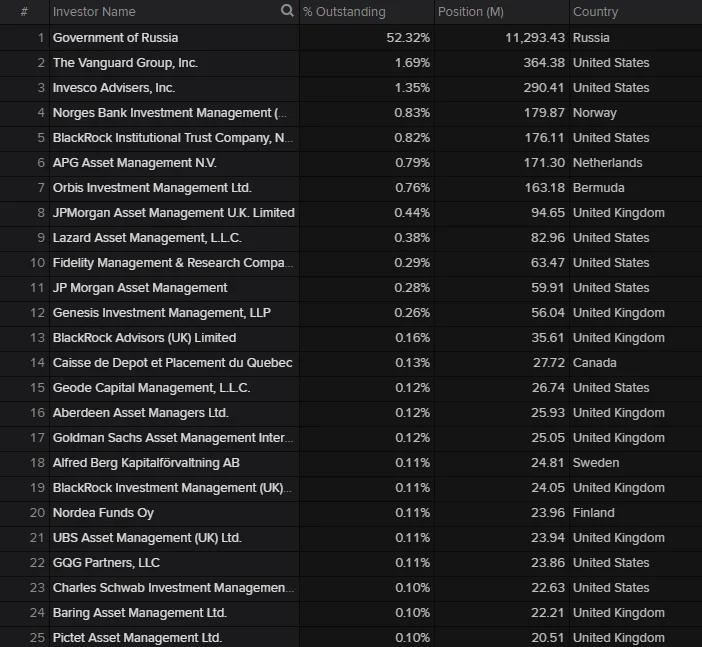 Если кратко, то 52% принадлежит правительству России. Остальное - частным держателем акций, среди которых, в основном, иностранцы. Это значит, что за рубеж иностранным акционерам отправится примерно 208 млрд. Рублей.