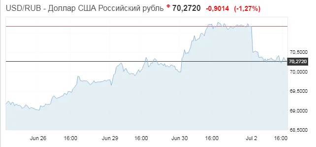 Одновременно с этим за последние дни доллар пошел "в рост", пробив отметку в 70 р.