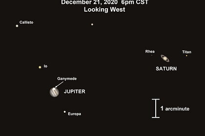 Ученые предсказали, что 21 декабря 2020 года после захода Солнца Юпитер и Сатурн подойдут на минимально близкое расстояние на ночном небе со времен средневековья. О редчайшем астрономическом явлении сообщается в пресс-релизе на Phys.org.