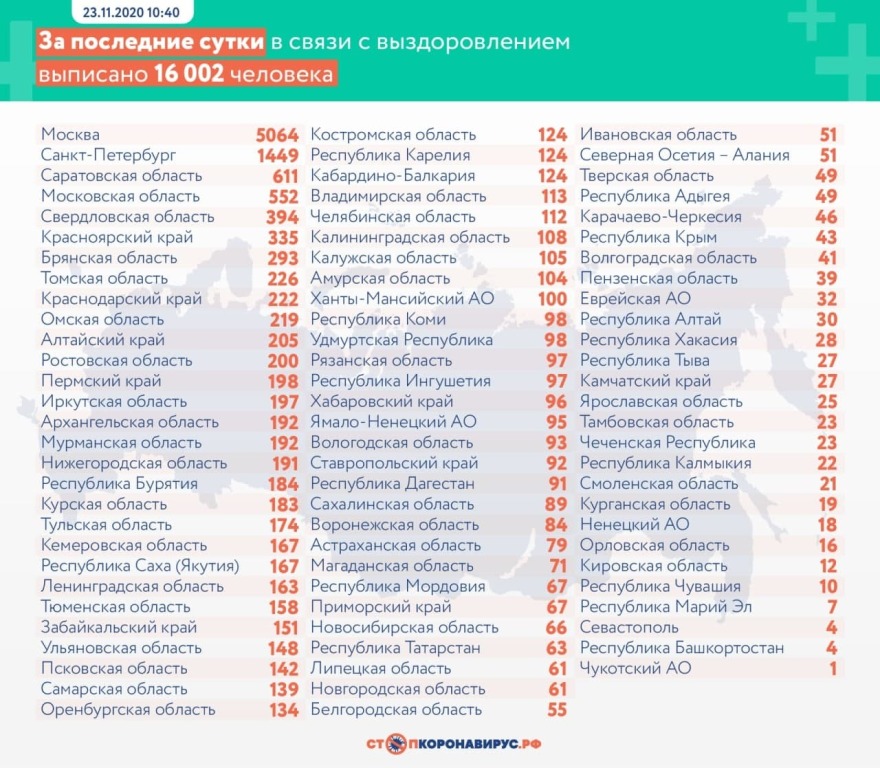Коронавирус: статистика коронавируса в России на 23 ноября 2020 года