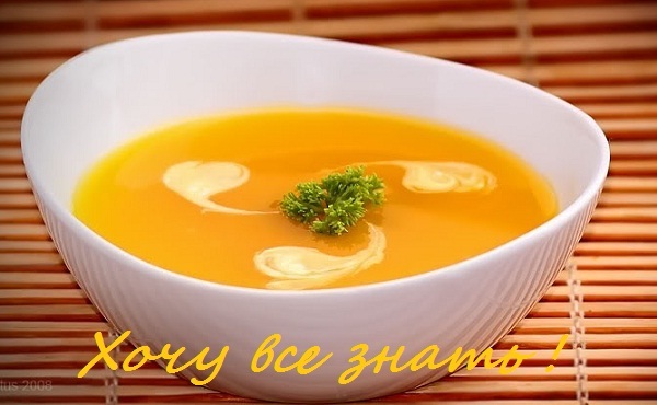 Суп-пюре тыквенный - очень полезное блюдо для людей с проблемным желудком и кишечником. Состав: 400 грамм тыквы, полтора литра овощного или мясного бульона, морковка, сливочное масло, веточка укропа, соль, красный жгучий перец.