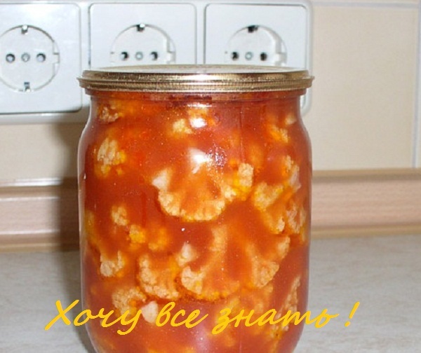 Салат с цветной капустой в томате на зиму.