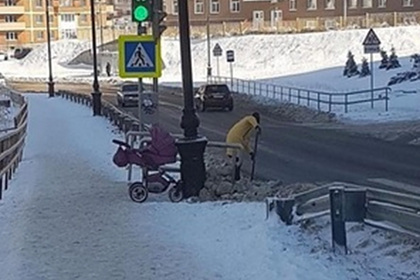 Убирающая снег женщина с коляской вызвала восторг в сети