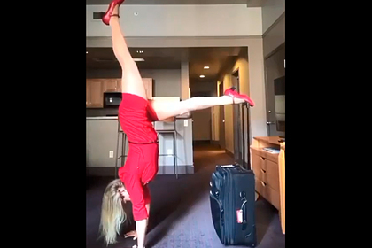 Стюардесса в мини-платье встала на руки при помощи чемодана и попала на видео