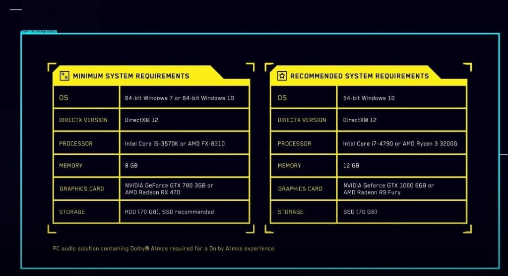 Итак, для запуска Cyberpunk 2077 на минималках, вам потребуется: