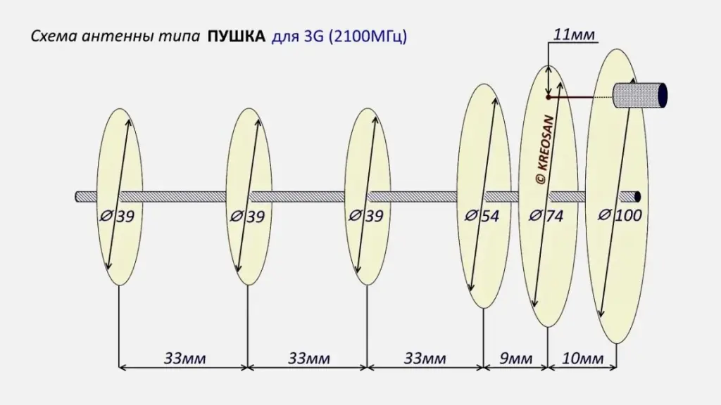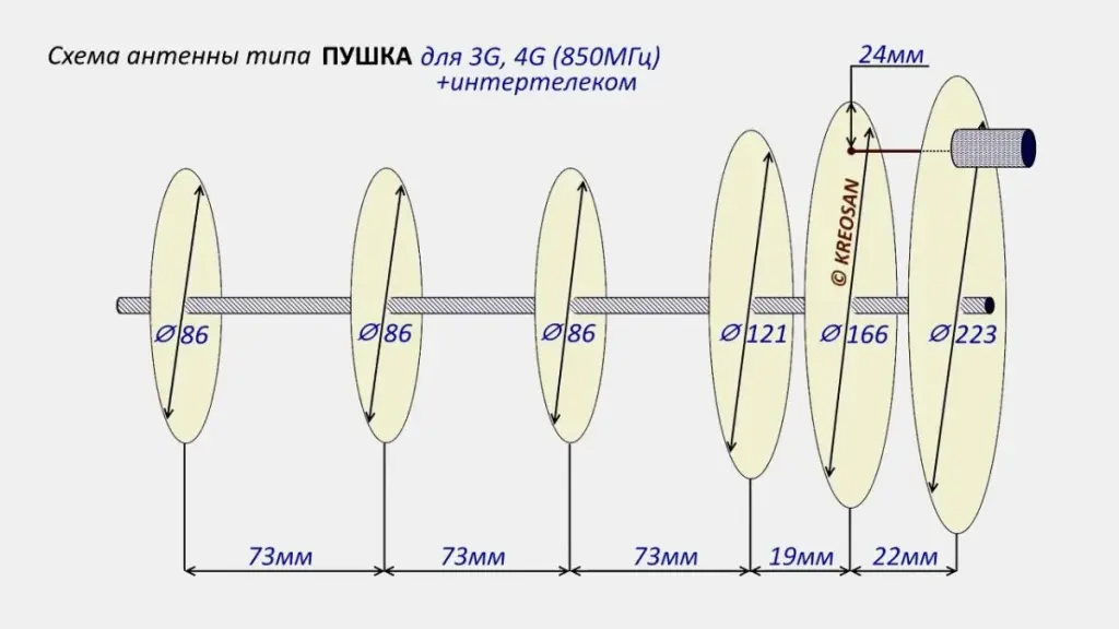 При сборке антенны важно соблюсти все размеры вплоть до миллиметра. Для каждого типа сети они разные. Обычно 4G сеть работает с частотой 2600 МГц, в 3G – 2100 МГц. Иногда 4G и 3G имеют частоту 1800 или 850 МГц. Если при поиске сети не удалось найти оператора для 3G и никакой информации о его частоте нет, тогда лучше делать антенну под параметры 2100 МГц, так выше вероятность уловить сигнал.