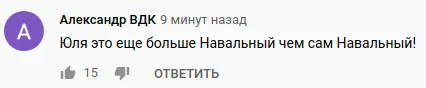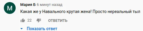 Жена Алеши представляется как настоящая героиня. В комментариях у Дудя ее уже хотят выдвинуть на Нобелевскую премию. На вопрос о том, работает ли у нее отец в ГРУ, ответила, что все это чушь и провокация. Еще она путалась с цифрами, когда говорила про то, как отправилась в аэропорт. И много складывалось удачно: Встала рано, включила телефон, когда обычно его выключает. Мутно все, как и у ее мужа.