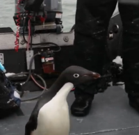 Пингвин залез в лодку к рыбакам