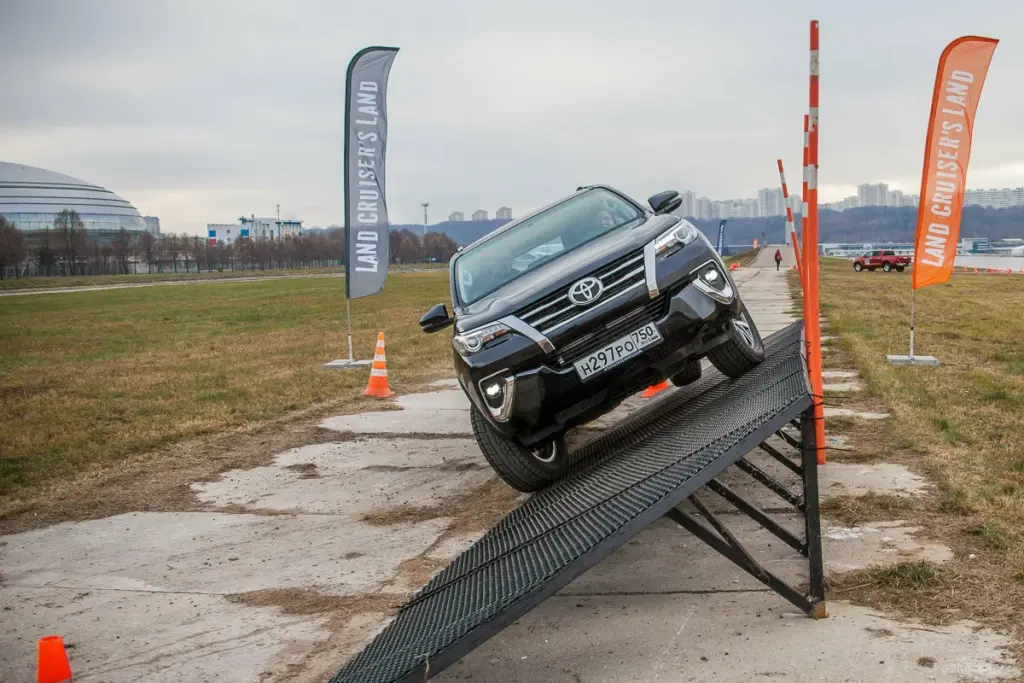 Toyota Land Cruiser’s Land — тест-драйв внедорожников «Тойота» по специальной трассе на которой установлены искусственные препятствия. Для теста предоставляются: Toyota Land Cruiser 200, Toyota Land Cruiser Prado, Toyota Fortuner, Toyota Hilux. Выбрать можно любой из этих внедорожников.