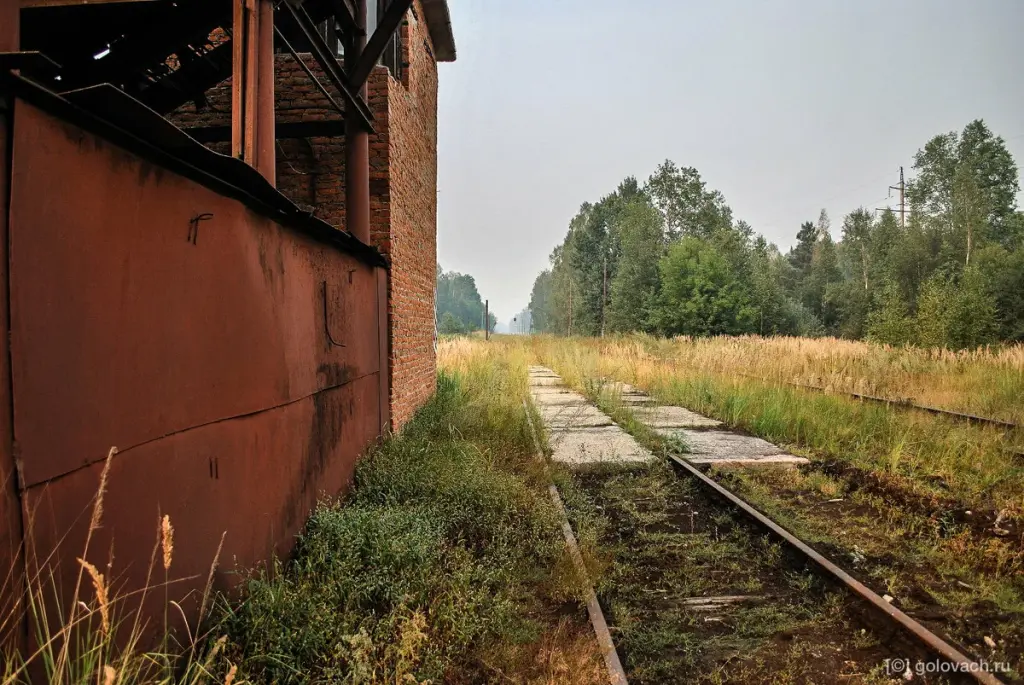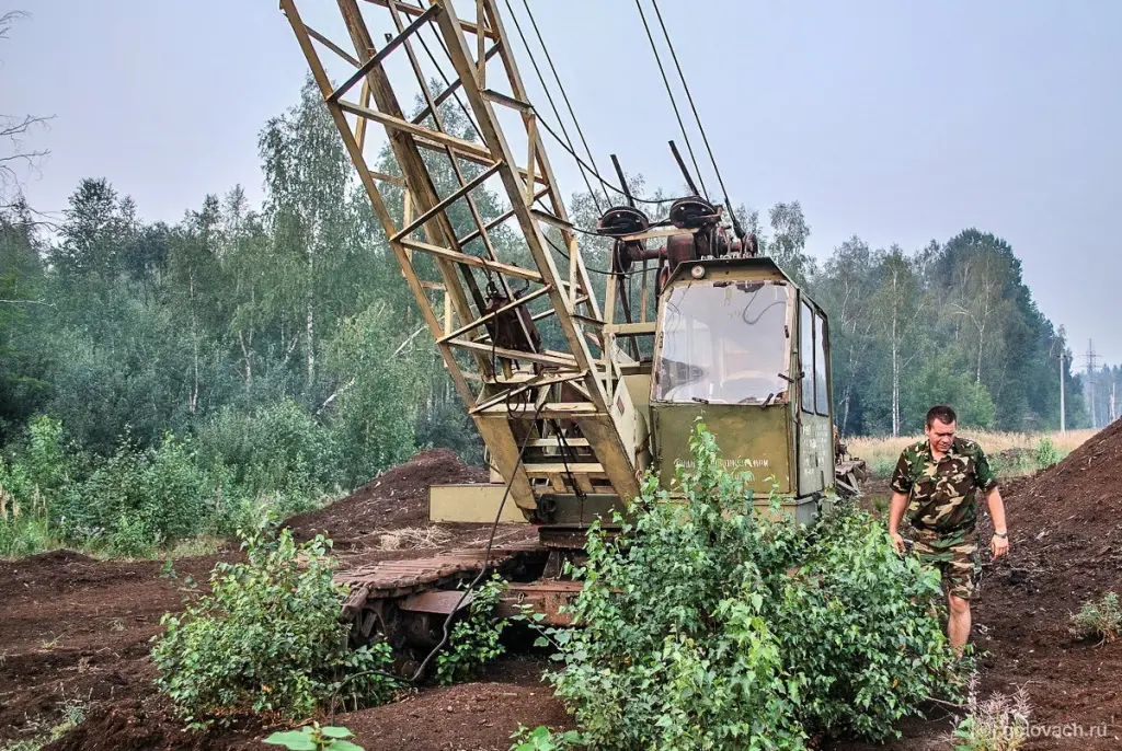 Вот такое место. Потребителем торфа в округе была электростанция, но после модернизации она стала работать на газу. Надобность в торфе и дороге, по которой его возили отпала. Дорогу разобрали, а технику распилили и отправили на переплавку.