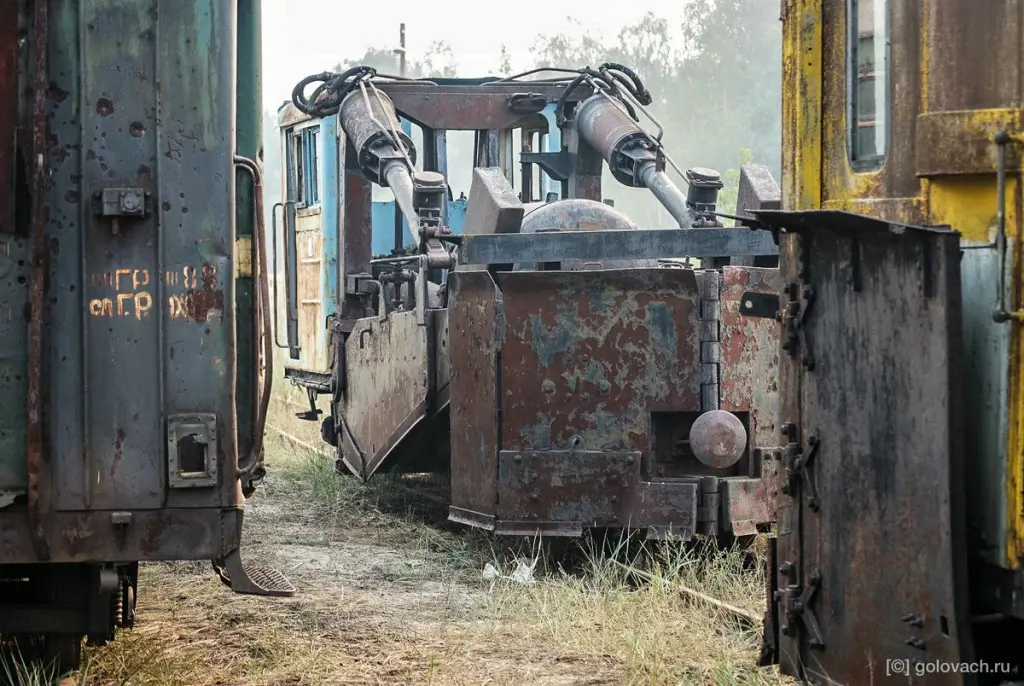 Кладбище агрегатов для узкоколейных дорог. Локомотивы, дрезины и мотовозы.