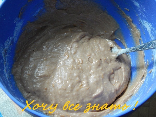 Муку вмешиваем постепенно, до тех пор, пока мы не получим густую вязкую консистенцию.
