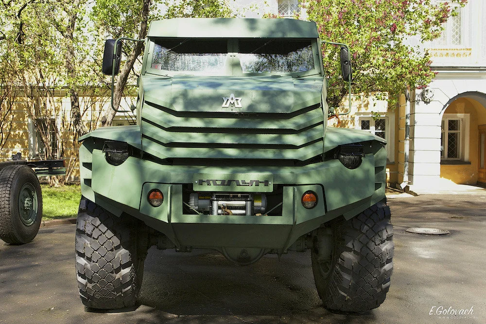 Олег рассказал, что дизайнеры исходили из требования упрощения конструкции с сохранением ее высоких функциональных характеристик. Этим обусловлены характерные формы корпусов, образованные сопряженными прямолинейными бронированными панелями. При этом следует отметить, что броневики «Торос» и «Колун» получили интересный и узнаваемый внешний вид.