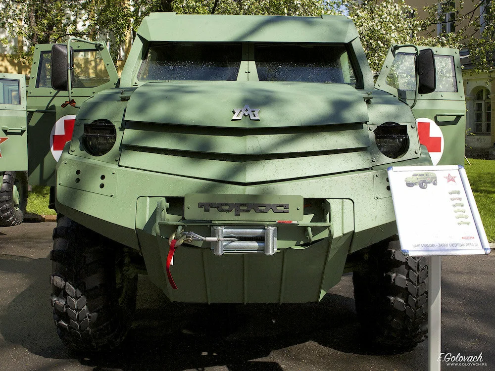 В конструкции внедорожников «Торос» использованы агрегаты БТР-60, машины оснащены двигателями производства Минского моторного завода и предстали перед публикой сразу в трех ипостасях: 10-местный универсал, фаэтон с открытым верхом, санитарный автомобиль. «Торос» может преодолевать водные преграды вплавь.
