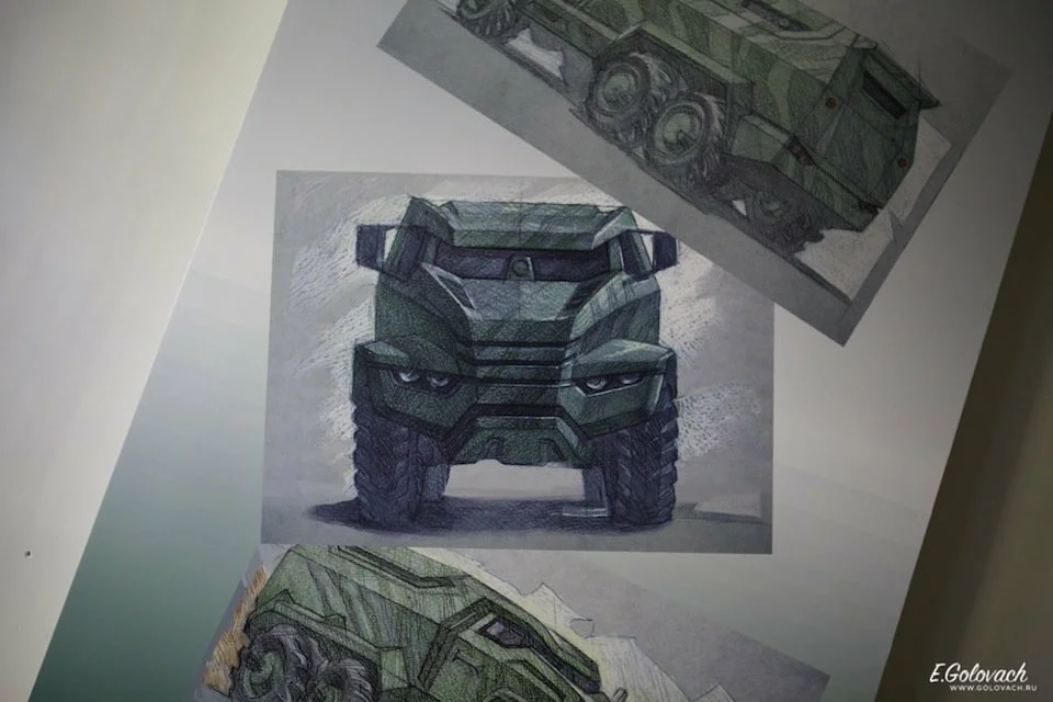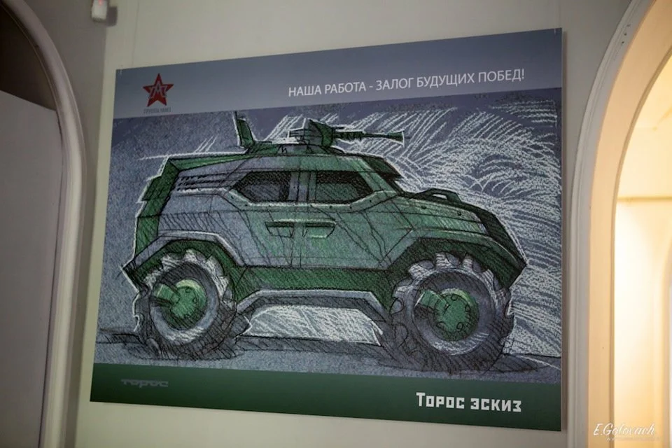 Ходовой прототип в материале. Выглядит очень мощно! «Торос» прошел путь от эскиза к реальному образцу за три месяца, а «Колун» — за один месяц!