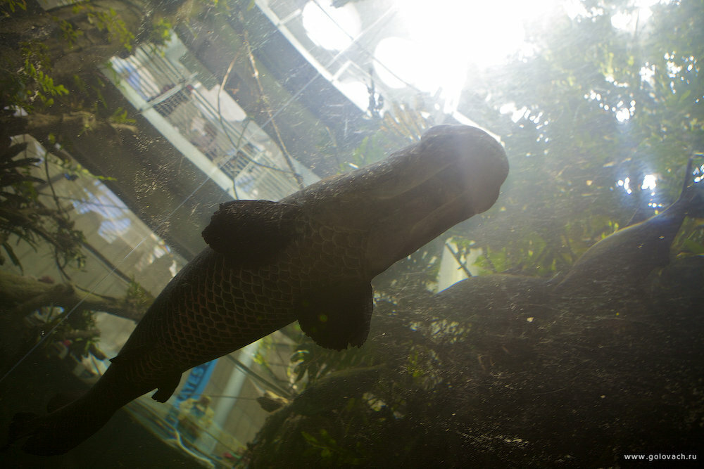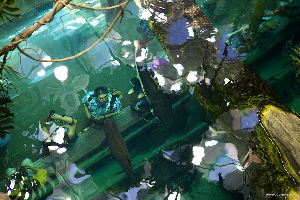 Экспозиция поделена на уровни. Каждый уровень другая климатическая зона. Уровень выше, вода холоднее.