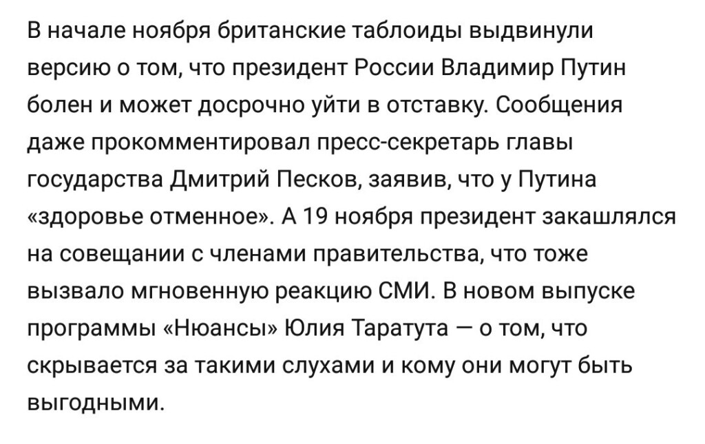 четкий ответ, откуда кашель и чем болен Путин...На пенсию пора. И дать молодым штурвал.