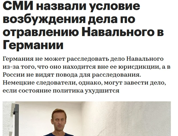 Начнем с плохой новости для Навального и его фанатов. Немцы точно не имеют права заводить уголовное дело, потому что у них нет таких прав. Есть только один вариант - ухудшение здоровья Навального, которое точно не предвидится, ведь чувствует себя Алексей просто замечательно, как не может быть странно.