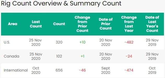 На этой неделе американские энергетические компании добавили нефтяные и газовые буровые установки, увеличив их количество четвертый месяц подряд, поскольку с середины июня цены на нефть держатся на уровне более 40 $/барр. 25 ноября.