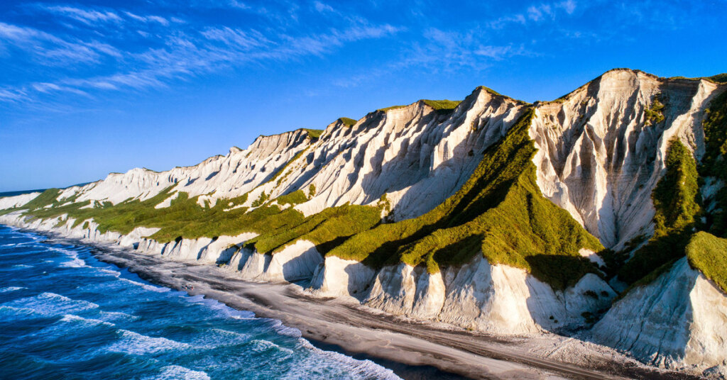 Необычные скальные образования из серо-белой пемзы из-за сильной эрозии образовали причудливые каньоны и расщелины. Высота этих скал от 17 до 114 м. Их белизна резко контрастирует с яркой зеленью и темно-серым песчаным пляжем.
