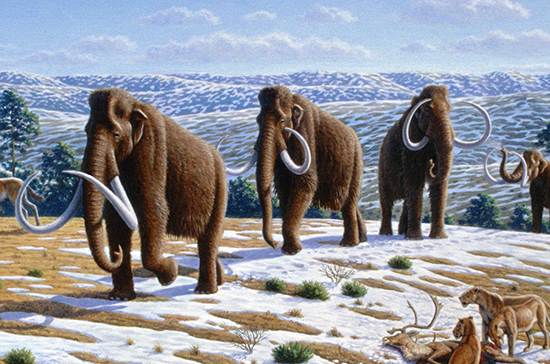 Животные достигали высоты 5,5 метра и массы тела 14-15 тонн; таким образом, мамонты были в два раза тяжелее самых крупных современных наземных млекопитающих — африканских слонов. Вообще они появились около четырех миллионов лет назад и были отлично приспособлены к жизни в суровых условиях холодного климата; обитали в Европе, Азии, Африке и Северной Америке. Многочисленные кости мамонтов были найдены на стоянках древнего человека каменного века. Обнаружены также рисунки и скульптуры мамонтов, сделанные доисторическим человеком. В Сибири и на Аляске известны случаи нахождения трупов мамонтов, сохранившихся благодаря пребыванию их в толще многолетней мерзлоты.
