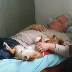 Собачка расслабляется с хозяином