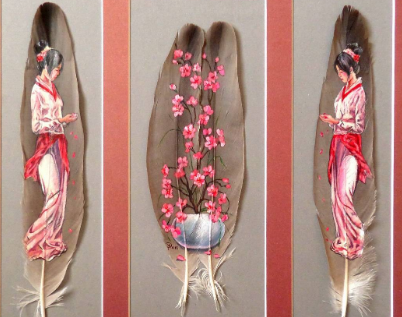 Картина на перьях птиц "Сакура цветет". Автор Ульяна Рощупкина, город Евпатория.