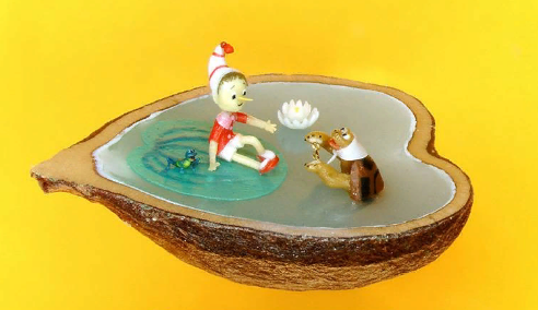 – фигурки известных мультперсонажей, стоящие на маковых зернышках и яблочных косточках;