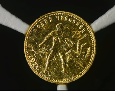 Микроскопическая копия червонца "Сеятель". Занесена в Книгу рекордов Гиннесса.