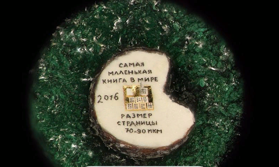 Рассмотри еще один вариант книги в миниатюре на срезе макового зернышка.