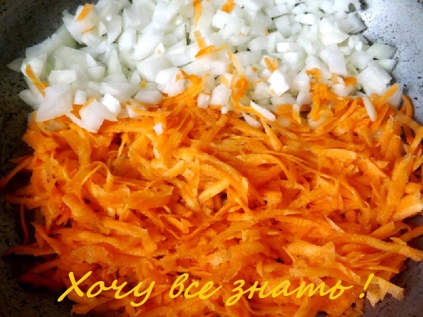 Далее нужно покрошить репчатый лук и натереть на крупной терке морковь.