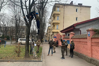 Во Львове активисты повесили на дереве чучело «москаля» возле Генерального консульства России в память жертв голодомора, сообщает УНИАН.
