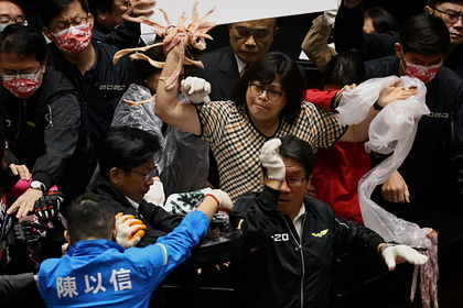 В Тайване депутаты от оппозиции забросали свиными кишками парламентариев от правящей партии. Об этом сообщает «Би-Би-Си».