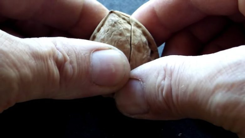 На этот случай требуется дополнительное усилие-раздавить половинку тыльной стороной ладони об плоскую поверхность стола.