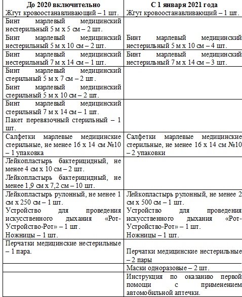 Думаю, нет смысла объяснять для чего необходима в каждом транспортном средстве медицинская аптечка, однако, с 1 января 2021 Минздрав снова корректирует содержание набора первой помощи. Но это изменение не обязывает бежать водителя приобретать новую автомобильную аптечку. Будет действовать старая, пока не выйдет срок годности компонентов внутри неё. Про новую комплектацию аптечек можно позабыть, аж, до 2027 года.