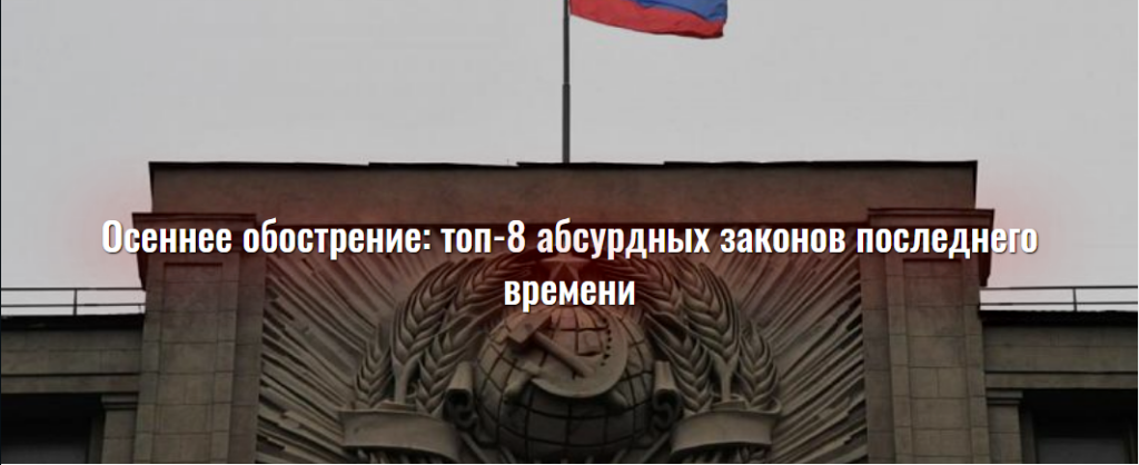 Всю осень мы писали о безостановочной работе депутатов, один за другим предлагающим и принимающим вредные законы. Осень на исходе: освежим их в памяти и составим рейтинг самых абсурдных законодательных инициатив.