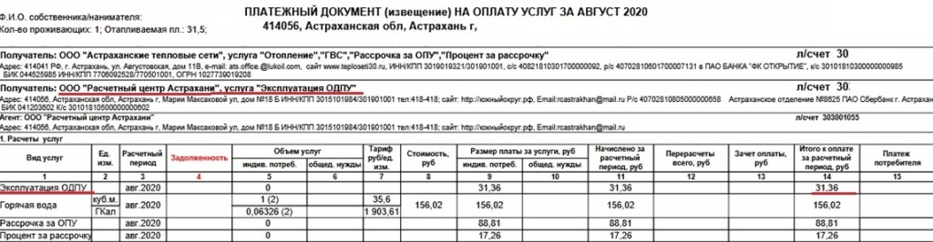 Кто же по мелочи собирает? Снова заглянем в платежку. Оказывается, получателем за услугу «Эксплуатация ОДПУ» является ООО «Расчетный центр Астрахани». Честно говоря, трудно представить, чтобы работники Расчетного центра каждый месяц «эксплуатировали» общедомовой прибор учета потребления горячей воды. Но за год со всех квартир одного дома можно собрать 20-40, тысяч рублей, а то и больше.