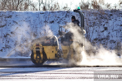 В главном парке Кургана асфальт укладывают в снег.