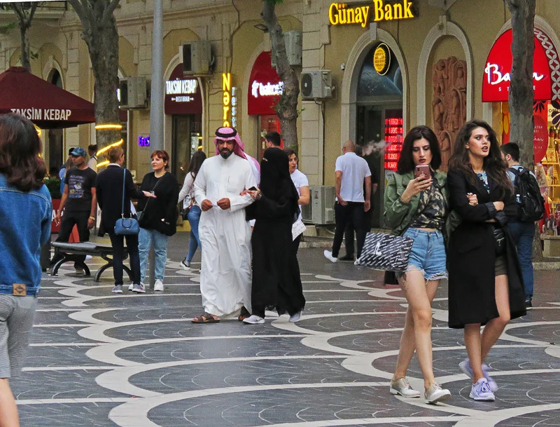 В Нахичевни пожилой таксист, когда я спросил его, не Арарат ли виден на горизонте, развоевался: "да это армяне переименовали, всегда он Агрыдаг был!", а потом и вовсе "Да не с армянами мы в Карабахе воевали, его захватил 366-й русский полк!". В другой раз к нам пристали с разговорчиками дети на велосипедах, и начав с вполне детских вопросов к моим спутницам ("А в какую из вас он влюблён?"), вскоре ребята перешли на совсем другие темы: "А почему вы с армянами дружите!? Вы зачем армянам оружие продаёте!?". Кому обиднее было проиграть ту уже прошлую войну - крошечной нищей Армении или огромной ядерной державе? Без встречавших знакомых Азербайджан запомнился чувством дистанции: "гуляй по нашим улицам, будь гостем, пей чай и кушай пахлаву, но помни, что ты - друг врага".